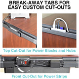 - INCLUDES A SOLUTION FOR MOUNTING POWER BLOCKS AND POWER STRIPS. Patent Pending Features, Hold Power Blocks up to 1.2” Thick x 6.25” Long, Customizable J-Channel Front Cutout for Power Strips
